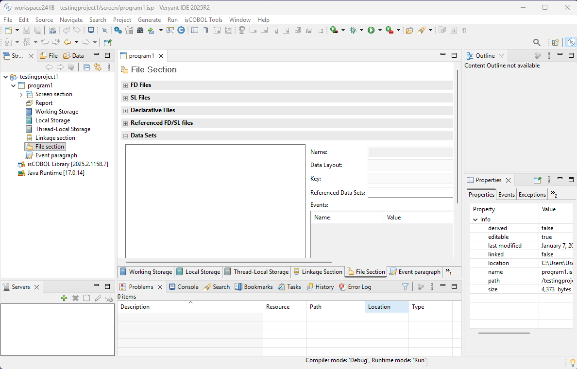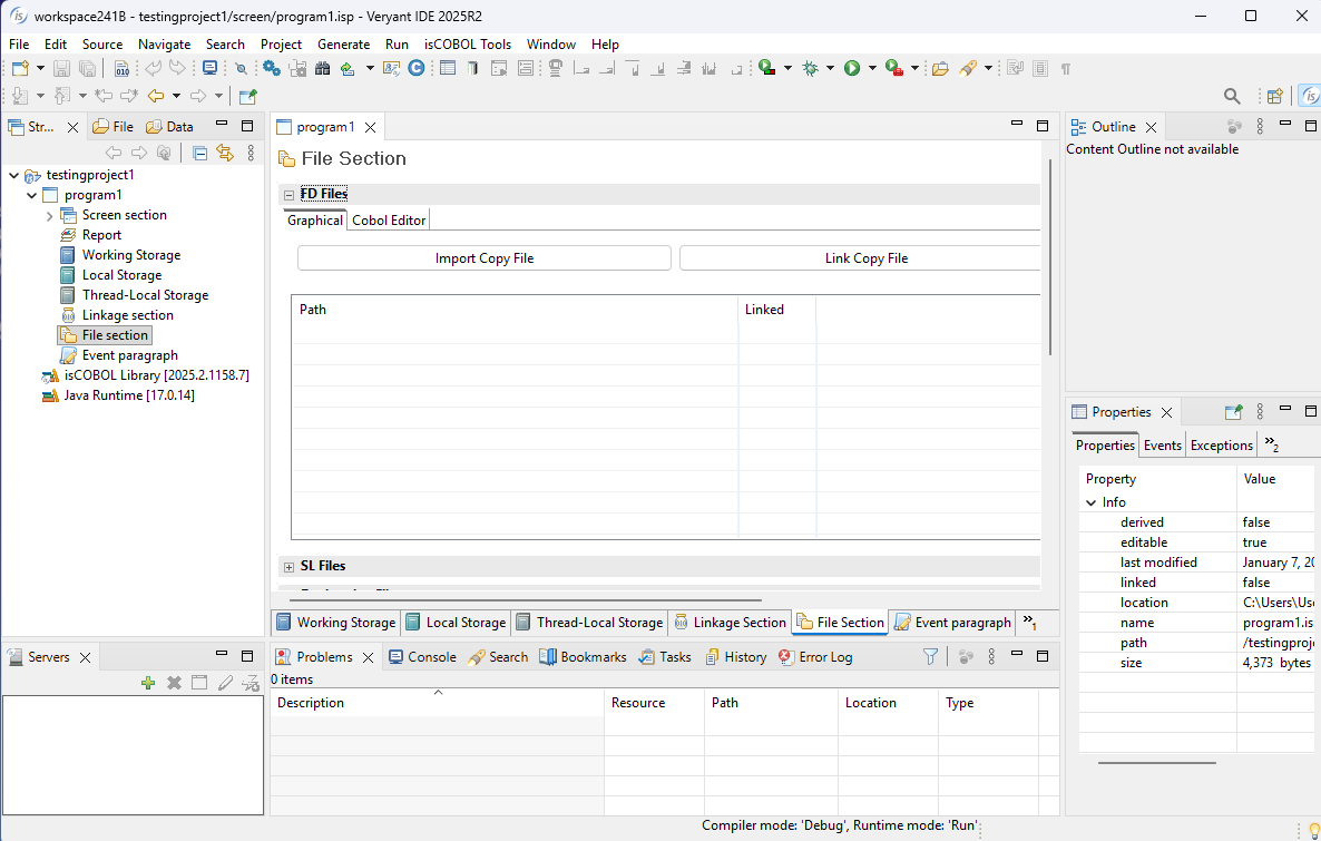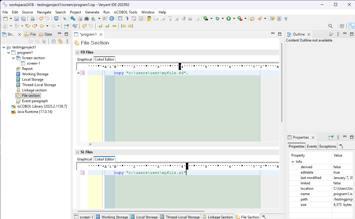 Estimated Reading Time: 2 MinutesYou can use the IDE to create data file descriptions and select statements using the Data View. But if you have existing files, you do not need to enter them in the Data View. isCOBOL's IDE can use FD/SL copybooks to generate the appropriate COPY statement in the COBOL source. These are the steps to be followed: