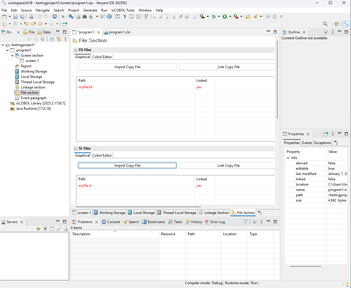3. Use the 'Link Copy File' button to browse for your FD and SL copybooks. You will be prompted to link to a file in your current project or the filesystem (anywhere else on your computer).