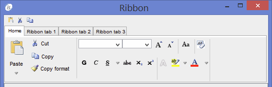 display ribbon lines 7 handle hRibbon upon hWin HEADER-ALIGN 1 modify hRibbon, tab-to-add ("Home" "Ribbon tab 1", "Ribbon tab 2", "Ribbon tab 3") display Ribbon-page-1 upon hRibbon(1) display Ribbon-page-2 upon hRibbon(2) display Ribbon-page-3 upon hRibbon(3) display Ribbon-page-3 upon hRibbon(4) |
