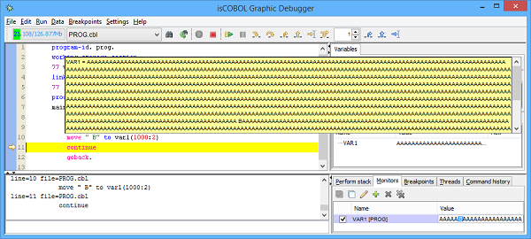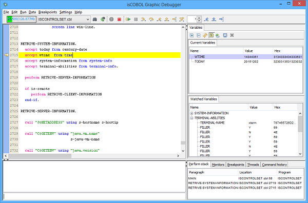 isCOBOL Debugger continues to be a core feature of isCOBOL Evolve so we like the idea to continue to improve it. For this reason in isCOBOL 2016 R1, the isCOBOL Debugger provides new features to continue to improve usability and easy to be used.
