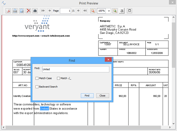 As depicted the picture below, the “find” feature is now supported in the isCOBOL Print Preview. User of print preview can now easily search text in forward or backward way with the option to match -/_.