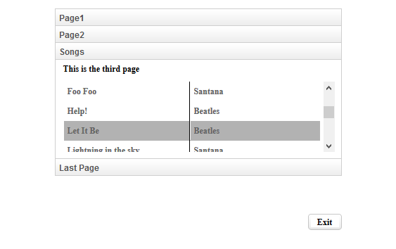 The image shown below depicts the final result with the ACCORDION style set on TAB-CONTROL in a browser.