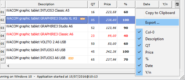 Grid content can now be copied to the clipboard and exported in Microsoft Excel XLS and XLSX formats. Those features can be added automatically or controlled by code.