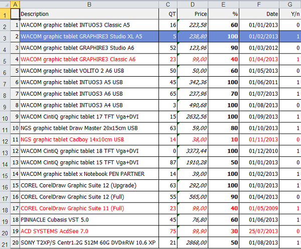 • CELL-SELECTED-COLOR to set the selected cell color, expressed as COBOL value