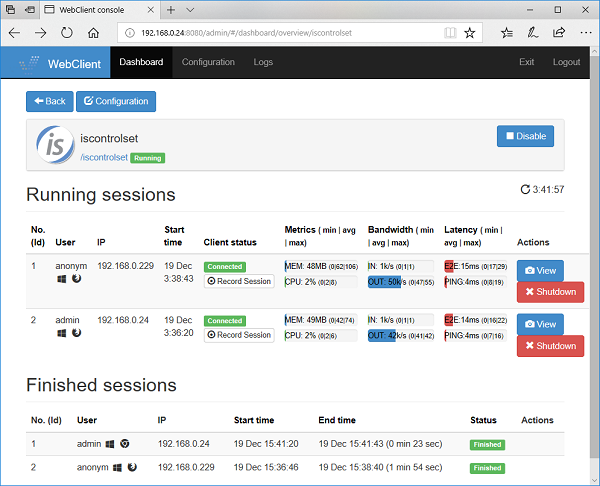 • Administrators can provide assistance to end users by using the built-in remote assistance feature, that mirrors the user program on the webClient administrative console, and allows administrator to take control of the session and help the user accomplish a task or troubleshoot a problem.