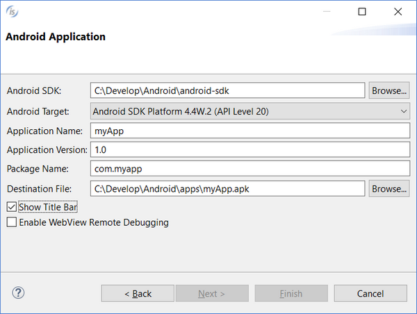The isCOBOL IDE now allows you to customize the application title bar, when exporting the project as an Android application. If you check the “Show Title bar” option as shown in Figure 2, Android title bar, then an Application Bar will be rendered at the top of the HTML UI of the exported application, displaying the application name.