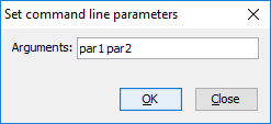 The 'Set command line parameters' values are now saved in the Debugger session file (.isd), making it easier to debug a program with CHAINING parameters in different debugging sessions, as shown in Figure 11, Debugger Set command line parameters.