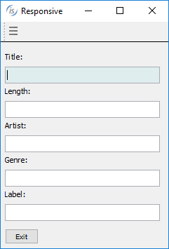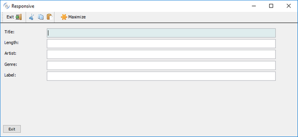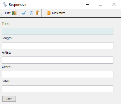 To enable a responsive layout, a new layout manager named LM-RESPONSIVE has been added to the DISPLAY WINDOW and DISPLAY TOOL-BAR statements, and the LAYOUTDATA property on controls can define behavior based on window size. An LMRESPONSIVE layout includes all the same rules provided with LM-SCALE layout.