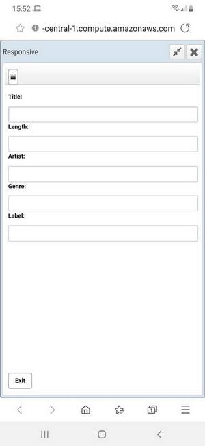 The picture below shows the same application running on a smartphone screen, where labels are displayed above the entry fields to optimize the limited width of the screen.