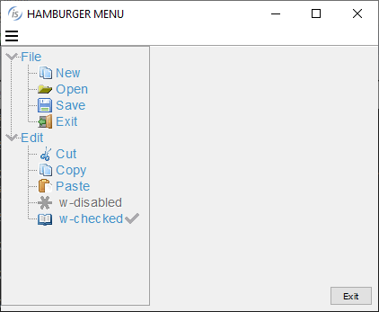 GUI controls have been improved in the 2020 R2 release. A new menu style is now available, the Hamburger menu, that arranges its items in a tree-view style.