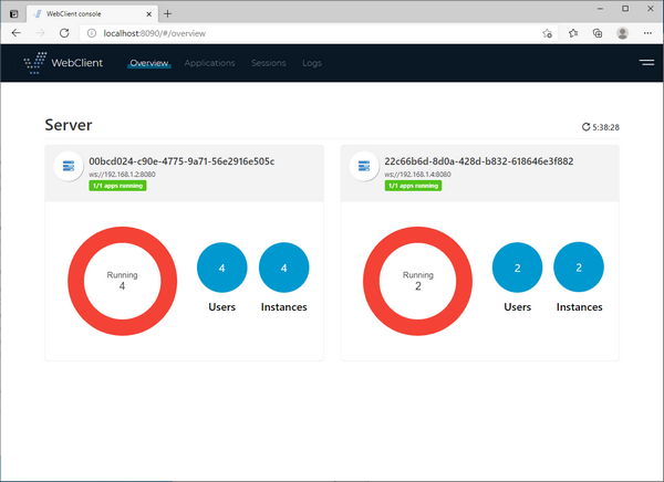 The multiple WebClient servers managed by the WebClient admin could reside either on the same server (listening on separate ports) or on separate servers. In order to manage multiple WebClient servers you must specify their WebSocket URL in the webclient/admin/webclient-admin.properties configuration file, e.g.