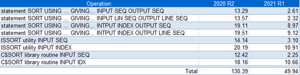 Sort operations are common in COBOL applications, from interactive applications, such as reading from indexed or sequential files and outputting a sorted file to be presented to the user, to batch applications, where usually an external utility, ISSORT, or a call to the library routine C$SORT are used to perform sorting operations. For both scenarios, the newest isCOBOL release has optimized the core of sort operations, and all COBOL programs will gain better performance as a result.
