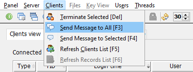 The message sending capability has been integrated in the isCOBOL Panel, allowing messages to be sent from the Panel to all or to a selected list of connected clients.