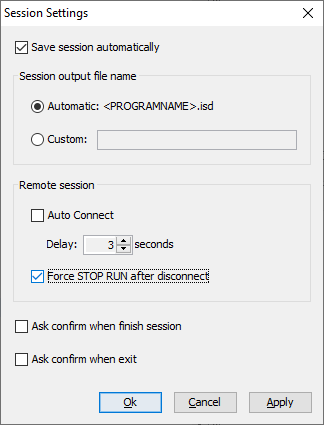 Figure 26. Debugger session settings